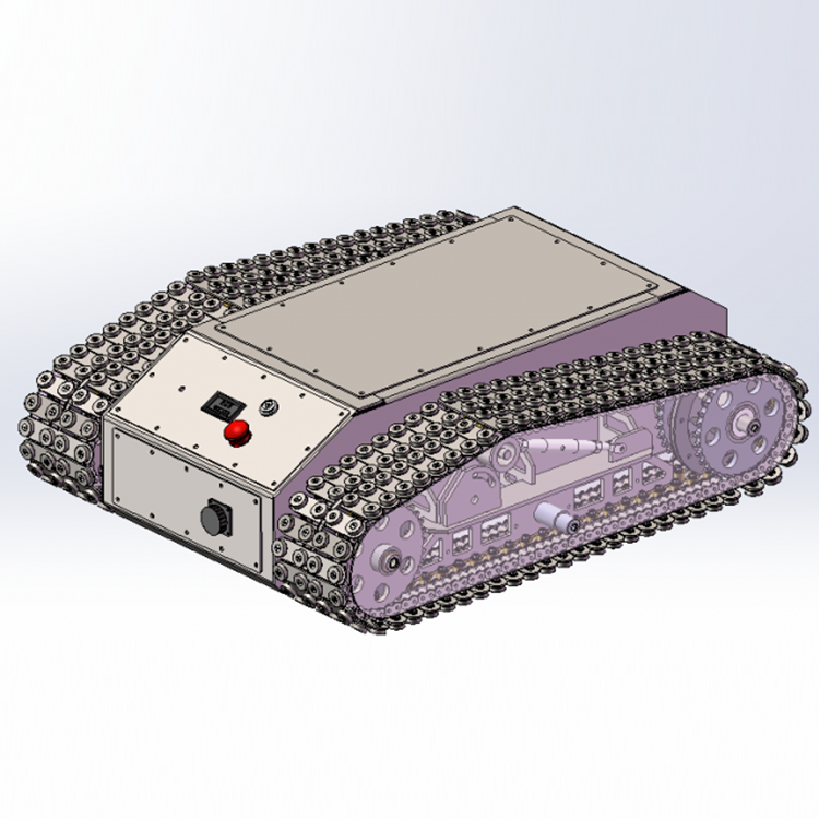 輪式行走機(jī)構(gòu)包括底盤、安裝在底盤上的由電機(jī)和減速器組成的傳動(dòng)系統(tǒng)、輔助支撐輪和由驅(qū)動(dòng)機(jī)構(gòu)驅(qū)動(dòng)的驅(qū)動(dòng)輪。